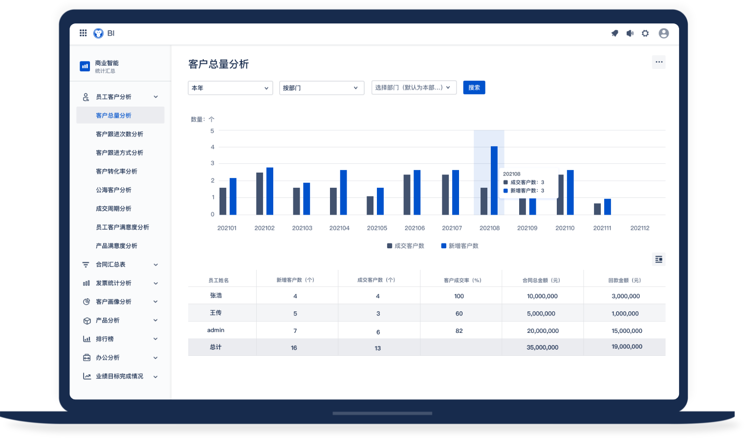僅通過簡單拖拽,即可創建強大的表單,字段類型豐富,布局樣式多變,邏輯公式充足,極大地提高數據收集效率,幫助企業獲取客戶全景信息!
